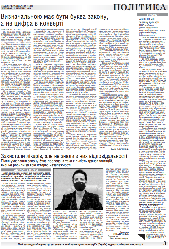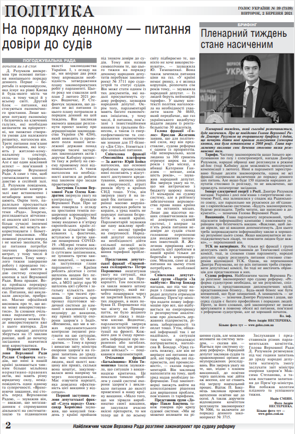 Повний випуск «Голосу України» від 02.03.2021 на сайті http://www.golos.com.ua