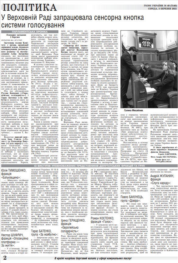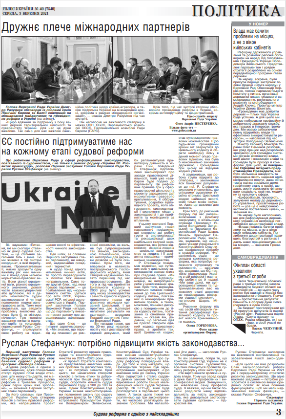 Повний випуск «Голосу України» від 03.03.2021 на сайті http://www.golos.com.ua