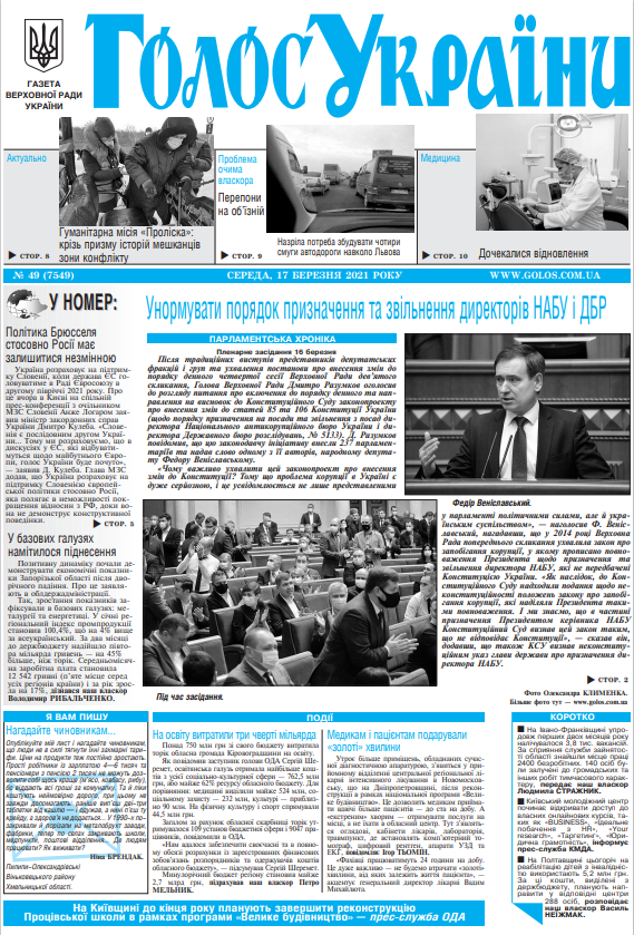 Повний випуск «Голосу України» від 17.03.2021 на сайті http://www.golos.com.ua