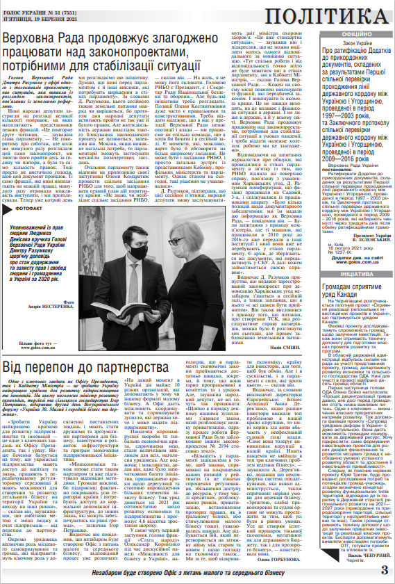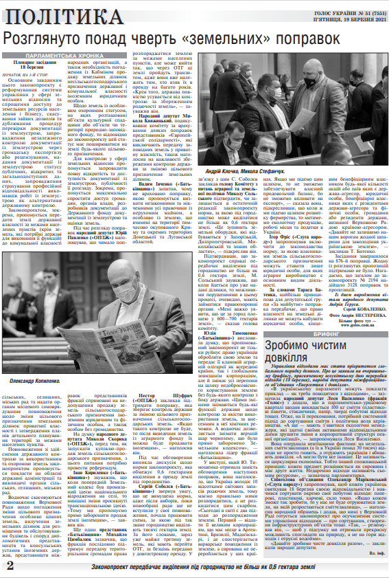 Повний випуск «Голосу України» від 19.03.2021 на сайті http://www.golos.com.ua