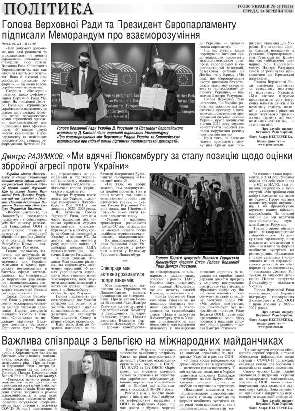 Повний випуск «Голосу України» від 23.03.2021 на сайті http://www.golos.com.ua