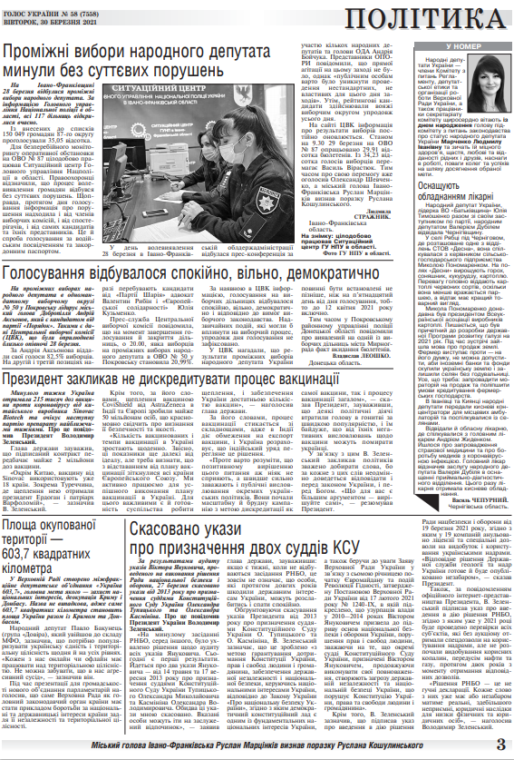 Повний випуск «Голосу України» від 30.03.2021 на сайті http://www.golos.com.ua