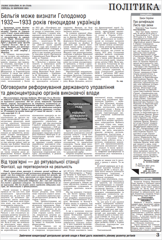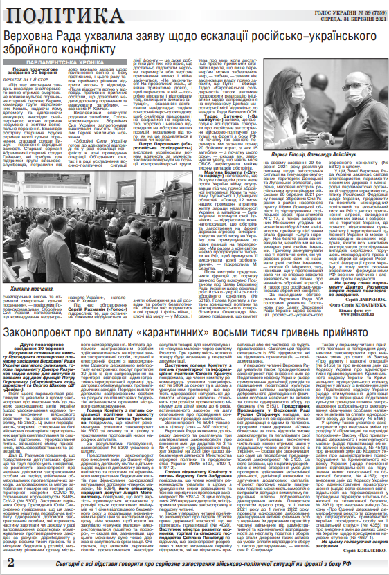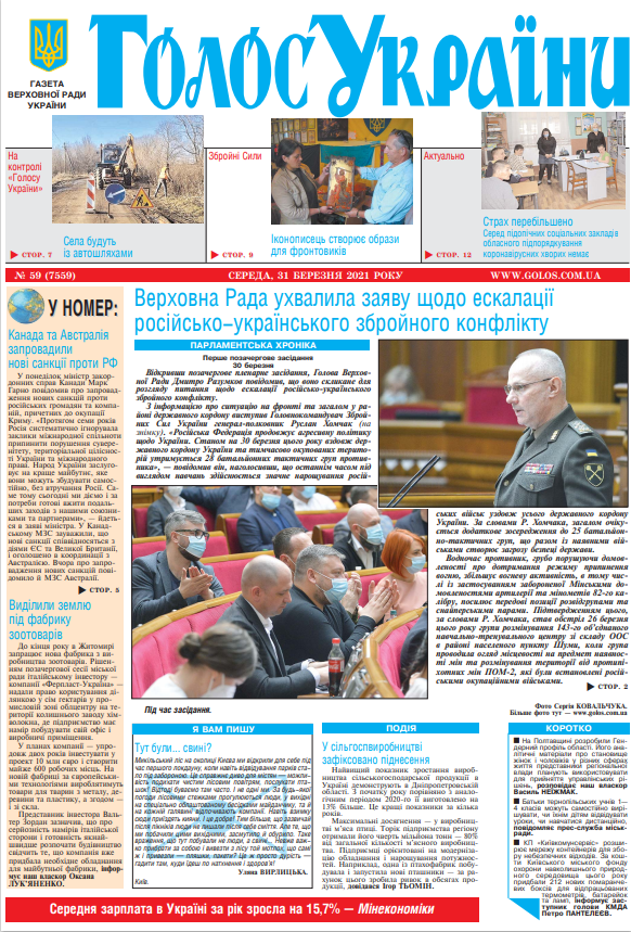 Повний випуск «Голосу України» від 31.03.2021 на сайті http://www.golos.com.ua