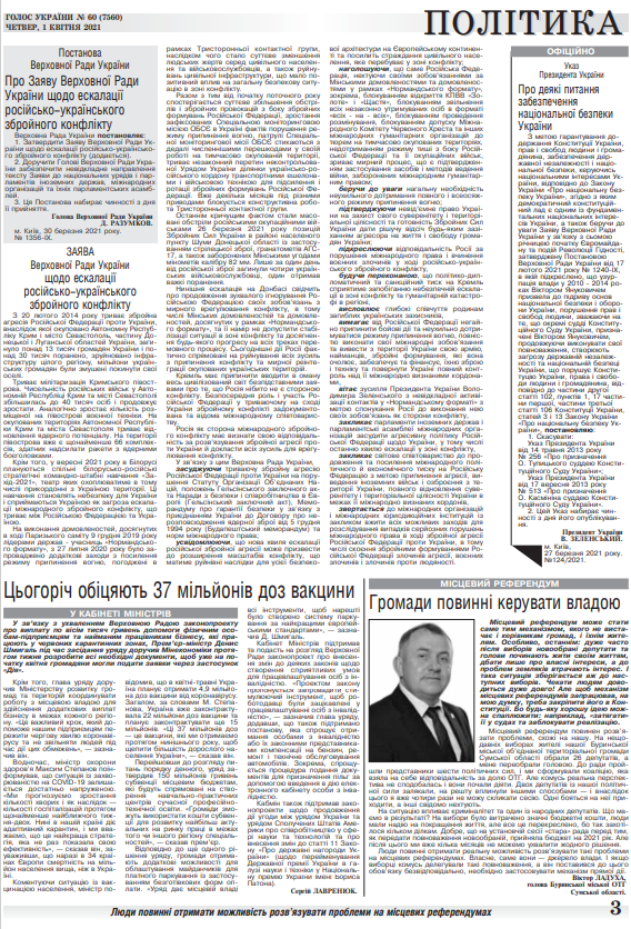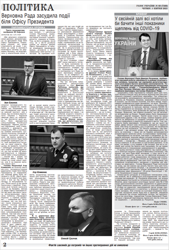 Повний випуск «Голосу України» від 01.04.2021 на сайті http://www.golos.com.ua