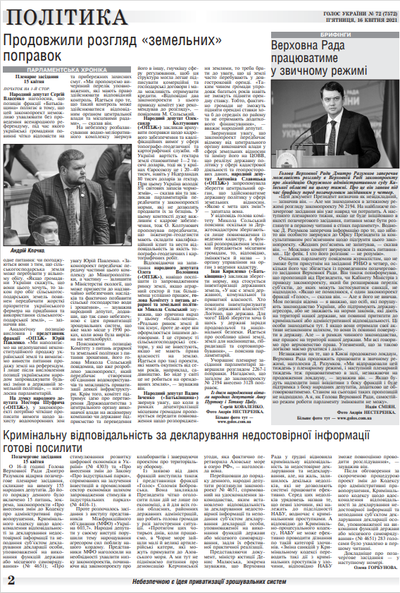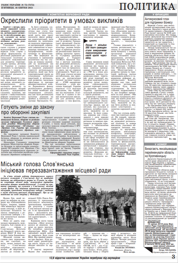Повний випуск «Голосу України» від 16.04.2021 на сайті http://www.golos.com.ua