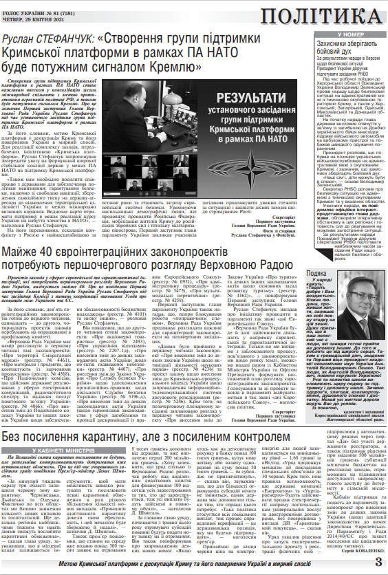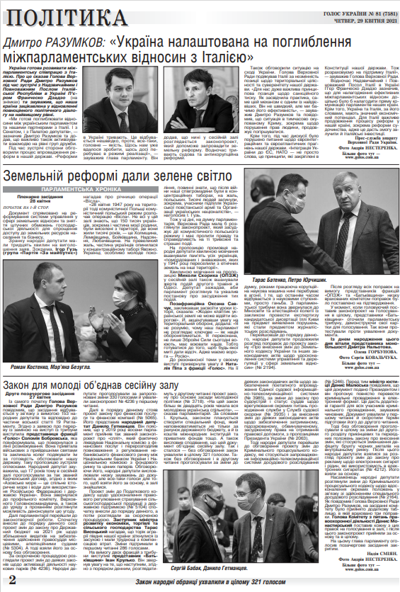 Повний випуск «Голосу України» від 29.04.2021 на сайті http://www.golos.com.ua