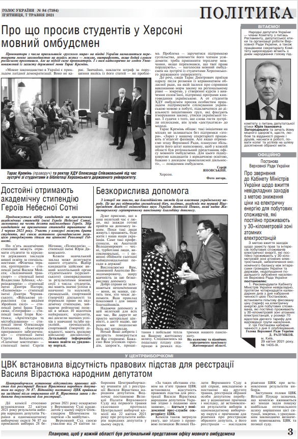 Повний випуск «Голосу України» від 07.05.2021 на сайті http://www.golos.com.ua