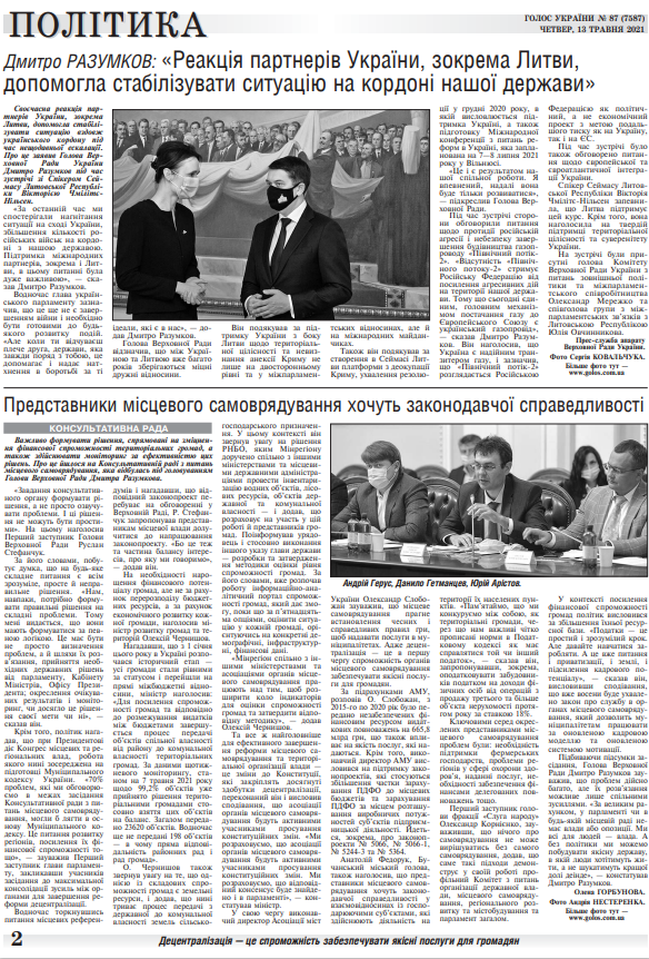 Повний випуск «Голосу України» від 13.05.2021 на сайті http://www.golos.com.ua