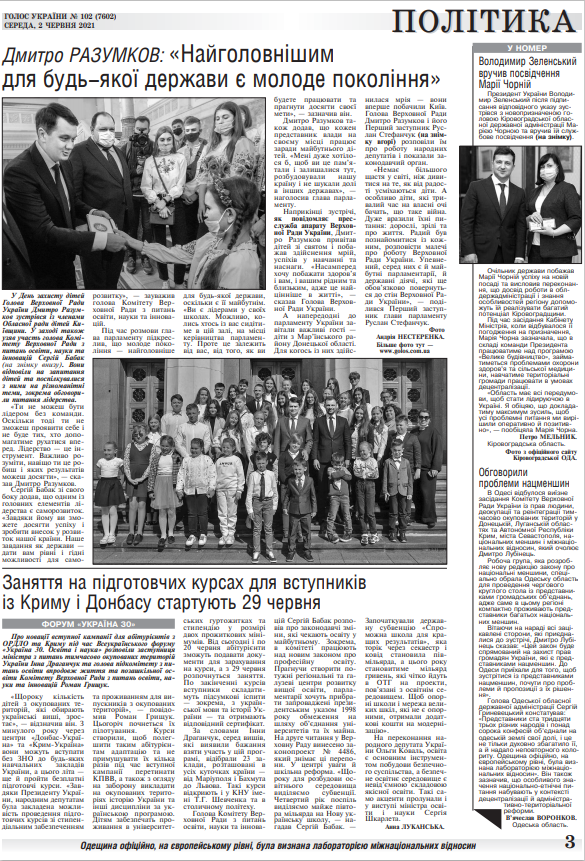 Повний випуск «Голосу України» від 02.06.2021 на сайті http://www.golos.com.ua