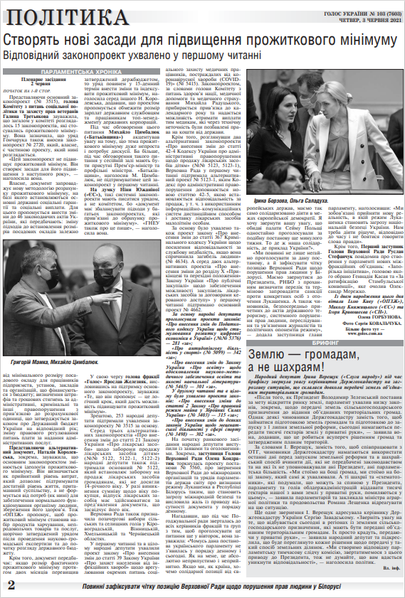Повний випуск «Голосу України» від 03.06.2021 на сайті http://www.golos.com.ua