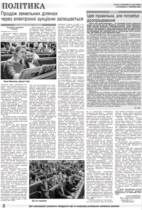 аукціони" (No 2195). (читайте у «Голосі України» на 1-2 стор. >>> article/346949).