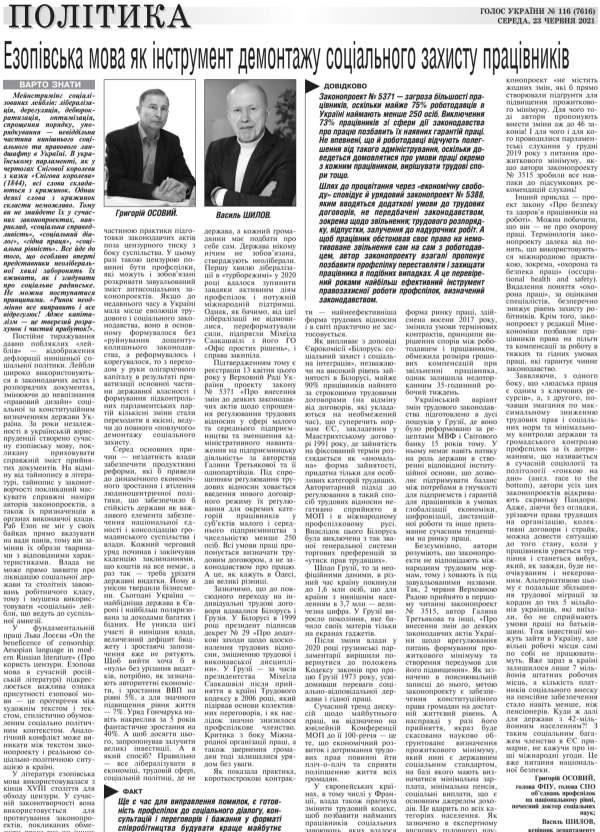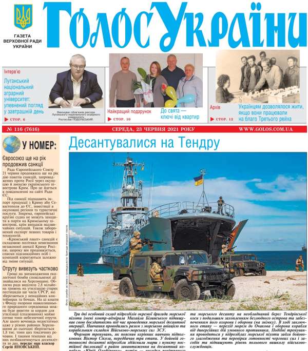 Читайте газету «Голос України», № 116 (7616), 23 червня 2021 року WWW.GOLOS.COM.UA