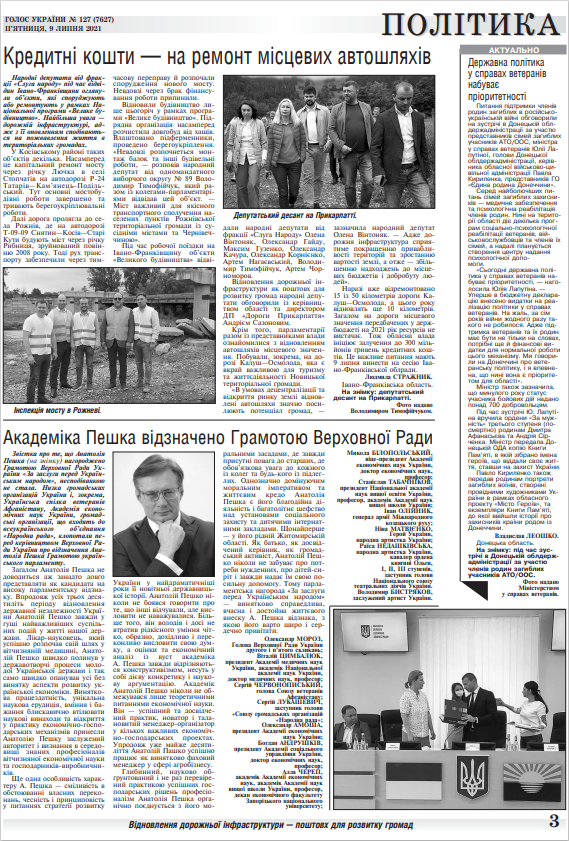 Найбільша увага - дорожній інфраструктурі, адже з її оновленням сподіваються на пожвавлення життя в територіальних громадах. (читайте у «Голосі України» на 3 стор. >>> article/348330).