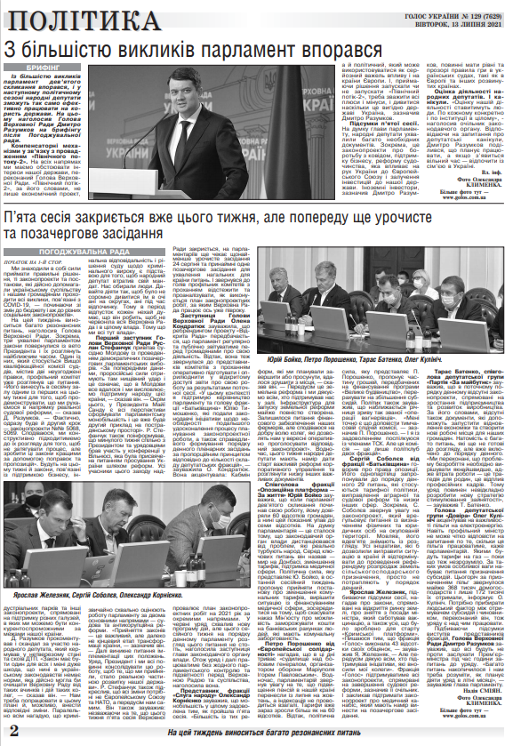 Повний випуск «Голосу України» від 13.07.2021 на сайті http://www.golos.com.ua