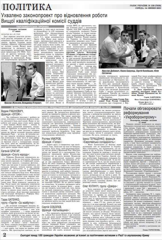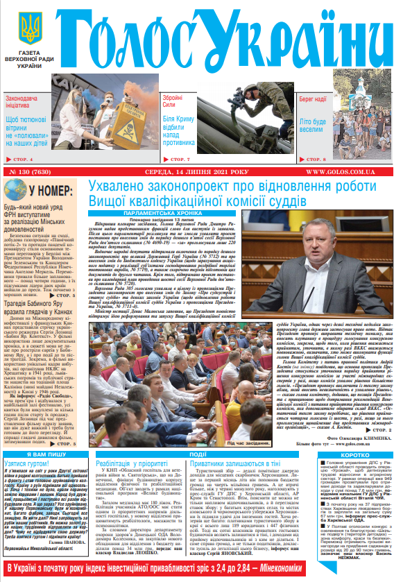 Повний випуск «Голосу України» від 14.07.2021 на сайті http://www.golos.com.ua