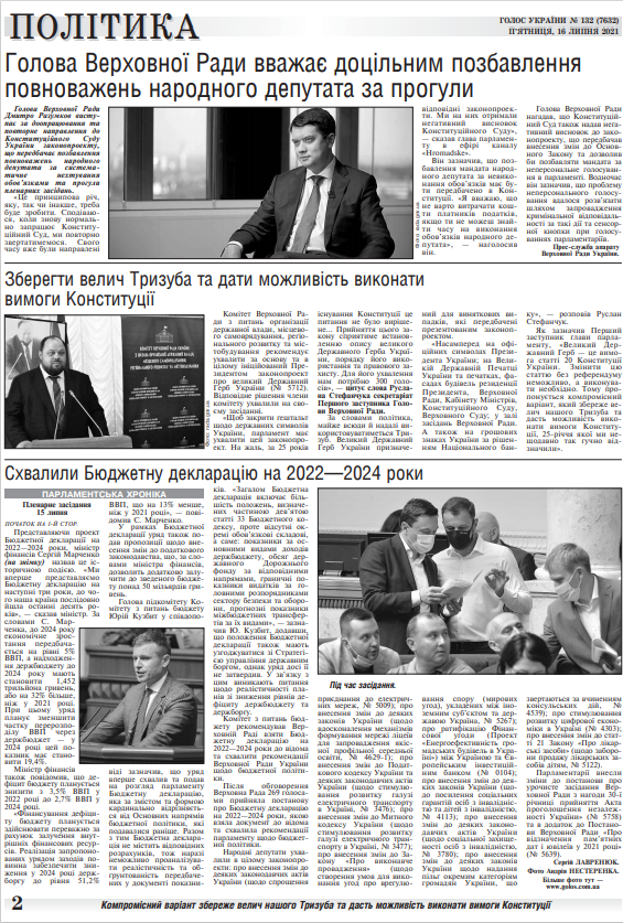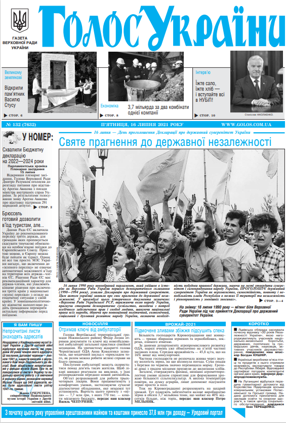 Повний випуск «Голосу України» від 16.07.2021 на сайті http://www.golos.com.ua