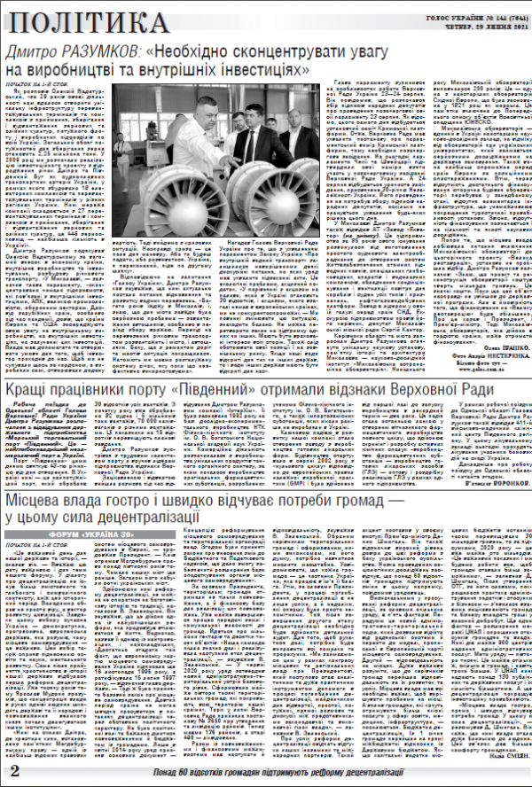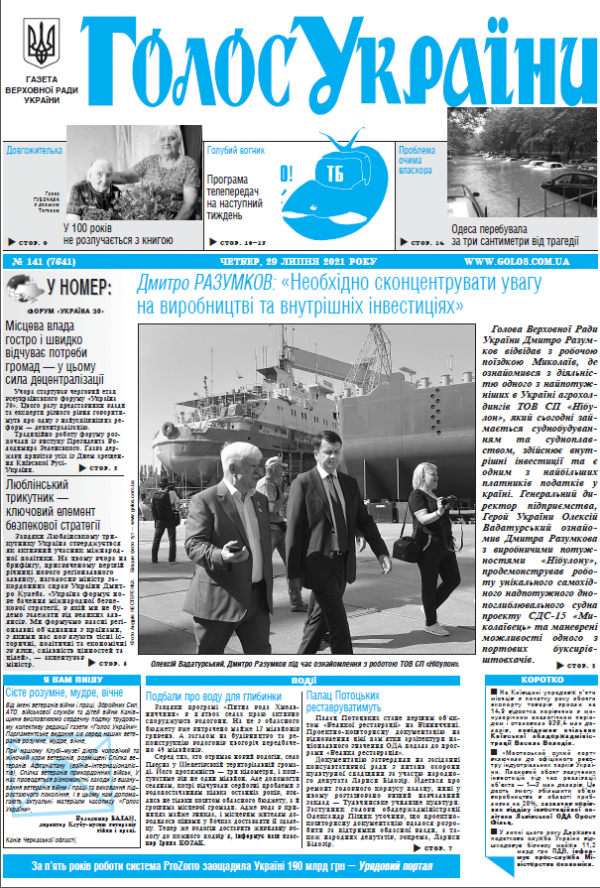 Повний випуск «Голосу України» від 29.07.2021 на сайті http://www.golos.com.ua
