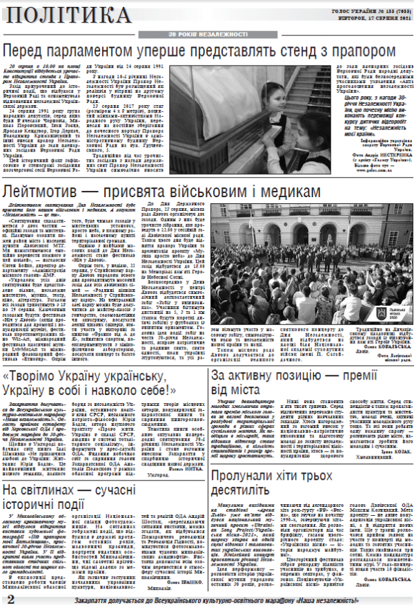 Повний випуск «Голосу України» від 17.08.2021 на сайті http://www.golos.com.ua