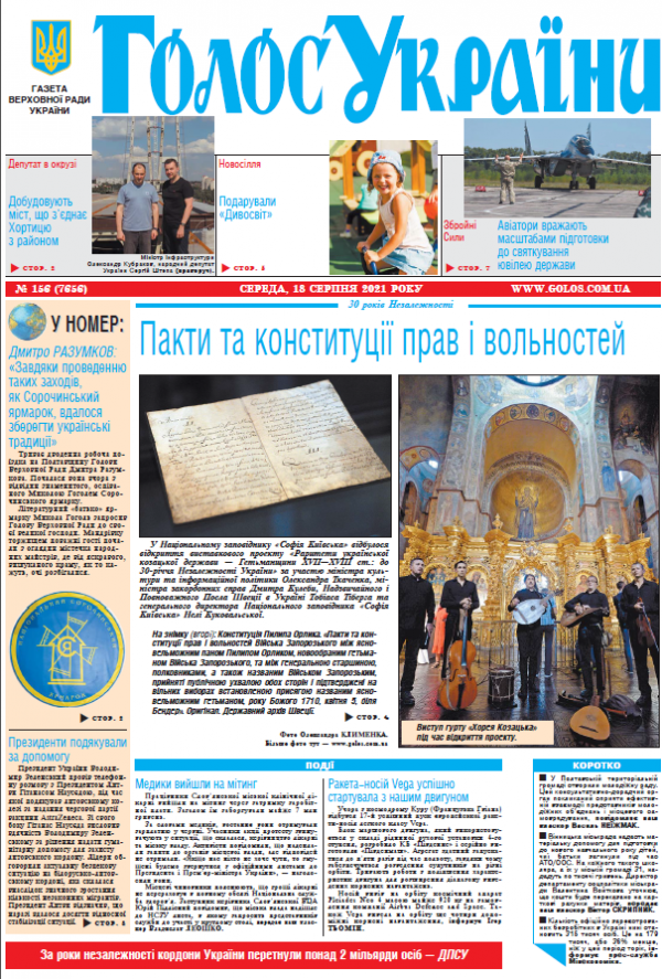 Повний випуск «Голосу України» від 18.08.2021 на сайті http://www.golos.com.ua
