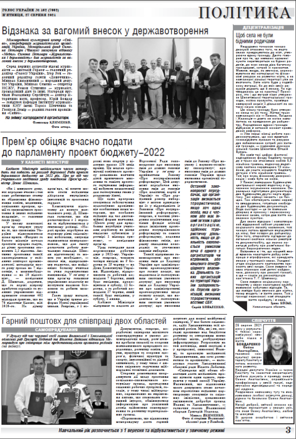 Повний випуск «Голосу України» від 27.08.2021 на сайті http://www.golos.com.ua