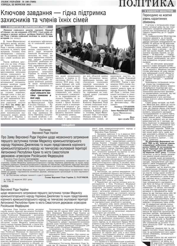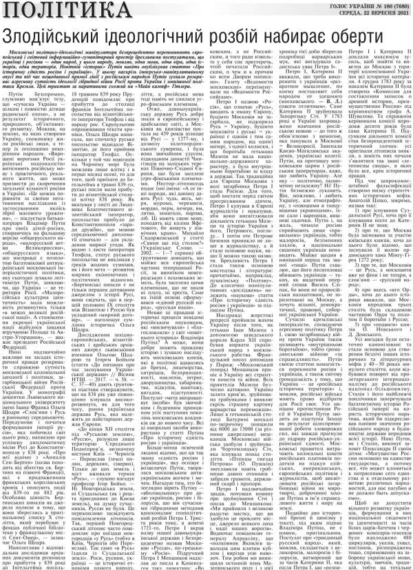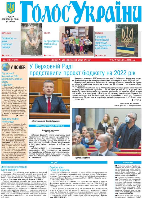 Читайте «Голос України», № 180 (7680), від 22.09.2021, на сайті http://www.golos.com.ua