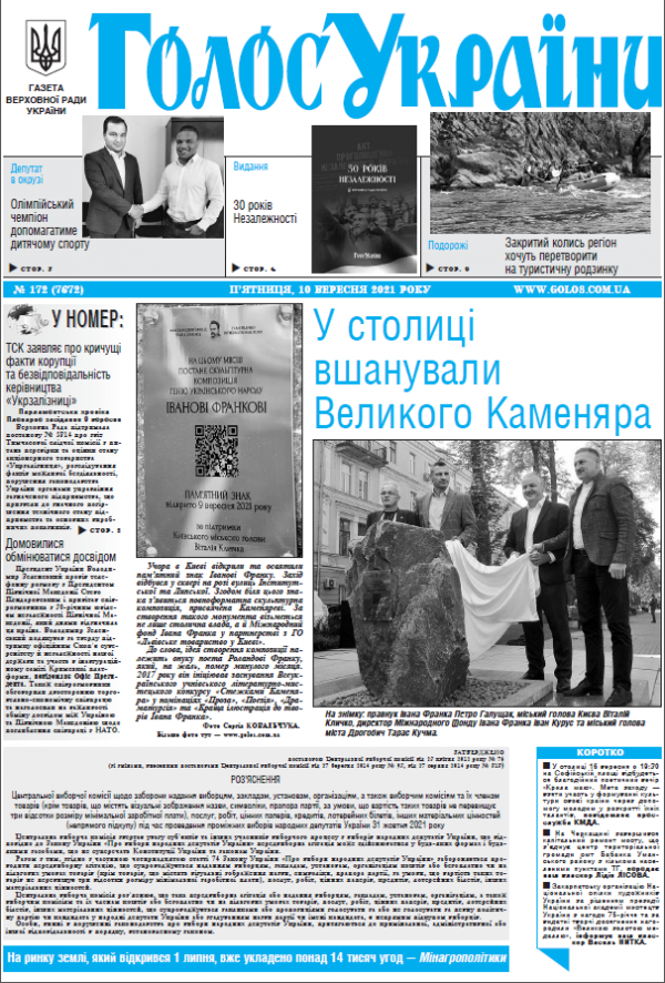 Повний випуск «Голосу України» від 10. 09.2021 на сайті http://www.golos.com.ua