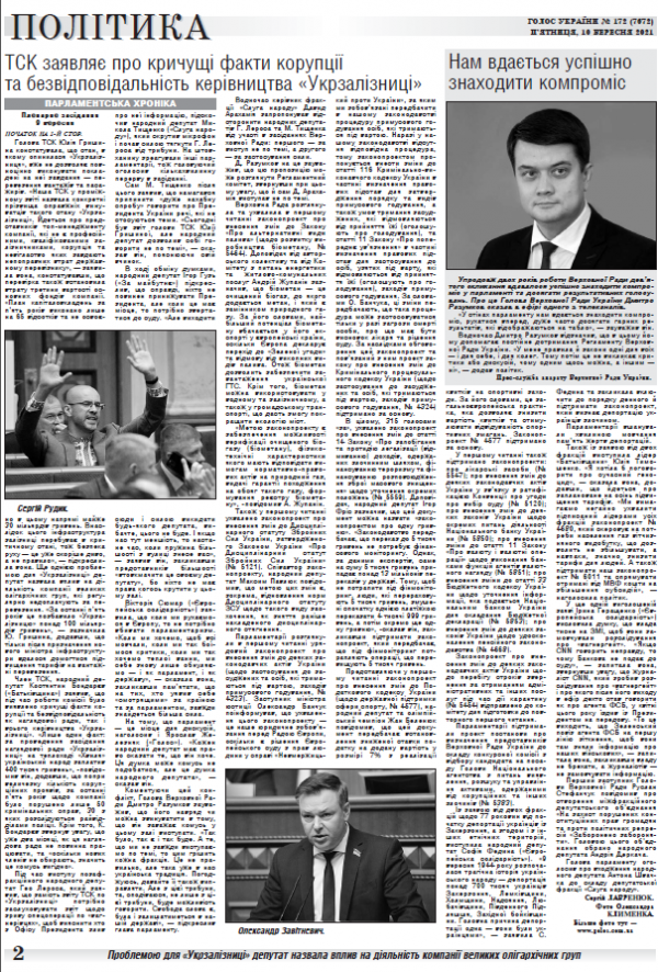 Упродовж двох років роботи Верховної Ради дев’ятого скликання вдавалося успішно знаходити компроміс у парламенті та досягати результативних голосувань. Про це Голова Верховної Ради України Дмитро Разумков сказав в ефірі одного з телеканалів. (читайте у «Голосі України» на 2 стор. >>> article/350856).