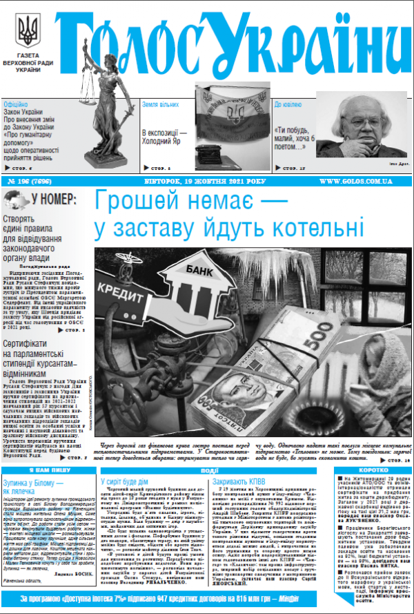 Повний випуск «Голосу України» від 19.10.2021 на сайті http://www.golos.com.ua