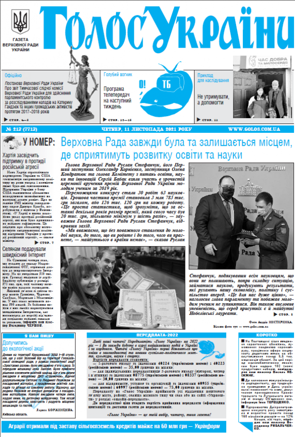 Повний випуск «Голосу України» від 11.11.2021 на сайті http://www.golos.com.ua