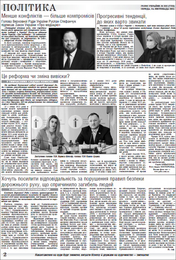 «Найщиріші вітання всім, хто упродовж довгих років працював над створенням інституту медіації в Україні! Тільки-но підписав Закон України «Про медіацію». Це надзвичайно важливий документ, що дозволить вирішити свої суперечки, не звертаючись до суду», — підкреслив Руслан Стефанчук. (читайте у «Голосі України» на 2 стор. >>> article/353698).