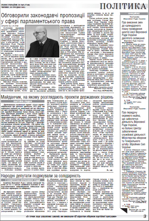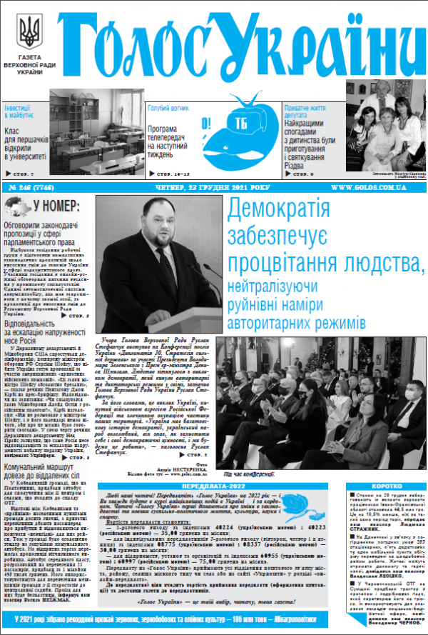 Повний випуск «Голосу України» від 23.12.2021 на сайті http://www.golos.com.ua