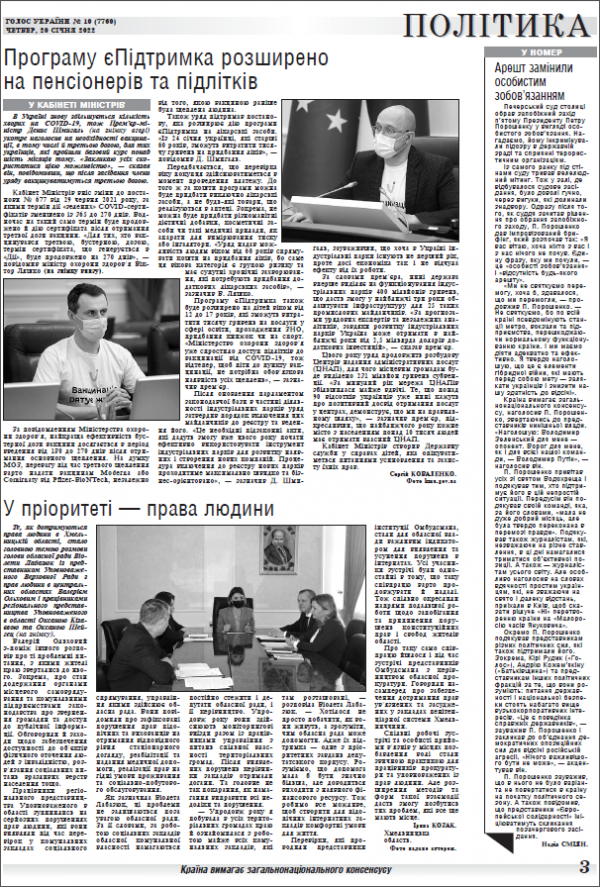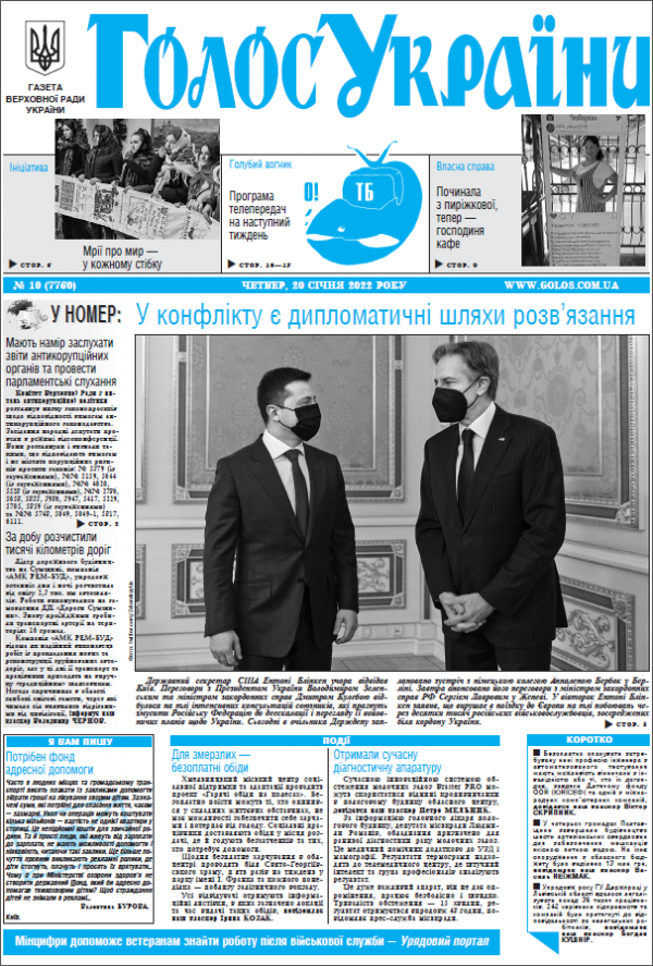 Повний випуск «Голосу України» від 20.01.2022 на сайті http://www.golos.com.ua