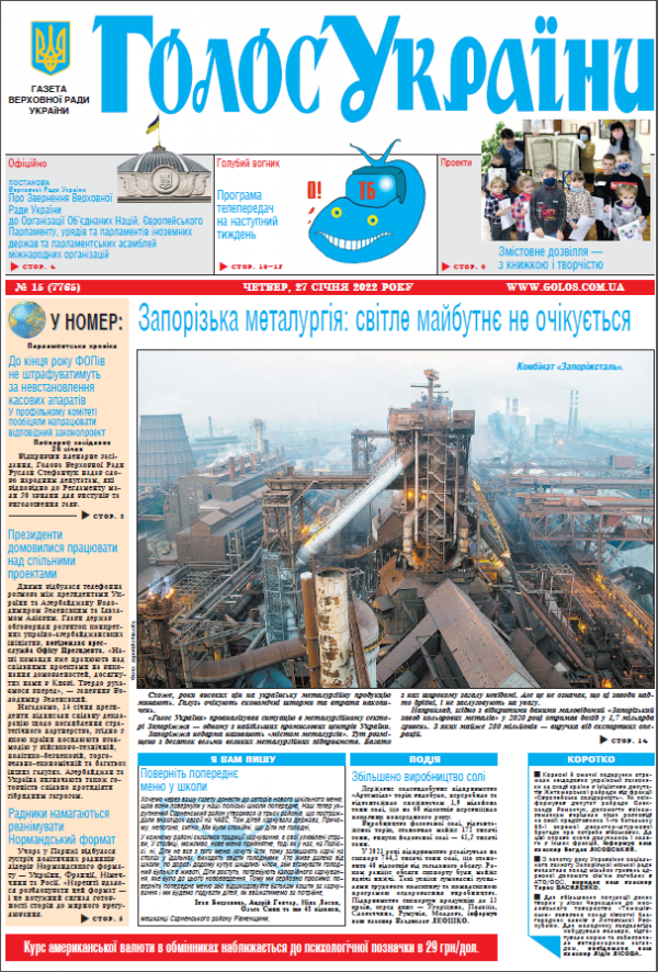 Повний випуск «Голосу України» від 27.01.2022 на сайті http://www.golos.com.ua