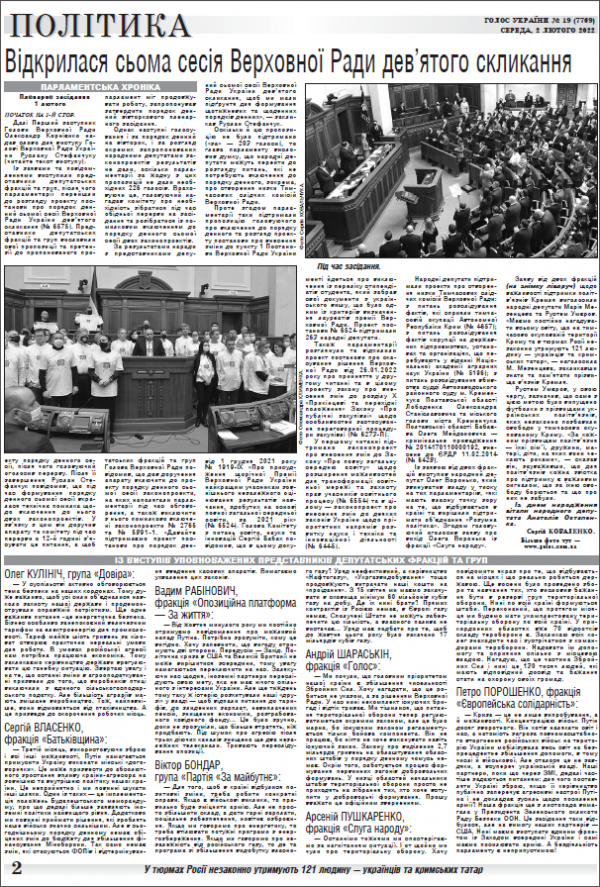 Повний випуск «Голосу України» від 02.02.2022 на сайті http://www.golos.com.ua