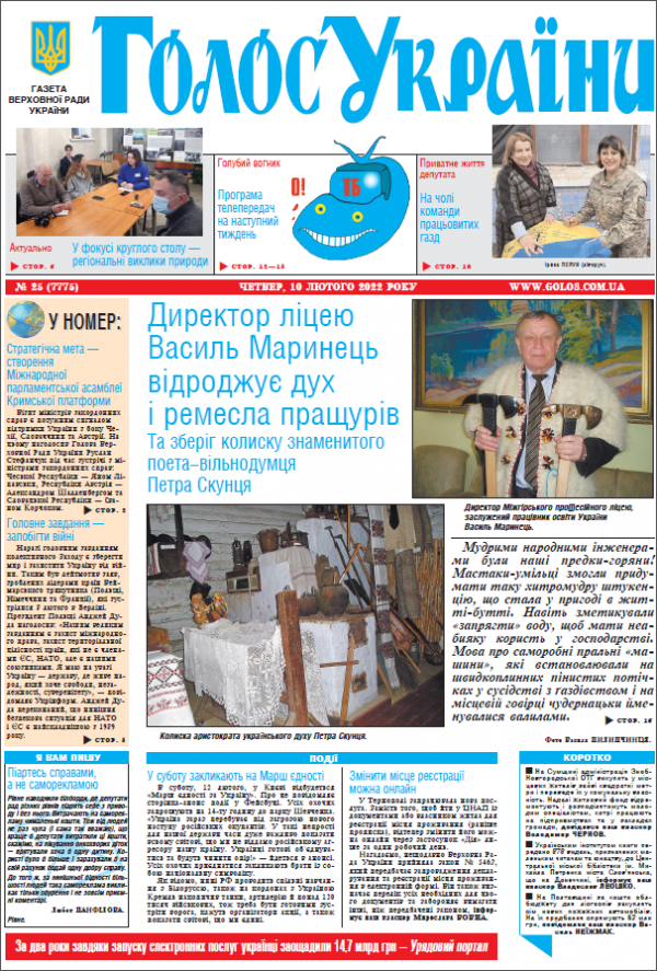 Повний випуск «Голосу України» від 10.02.2022 на сайті http://www.golos.com.ua