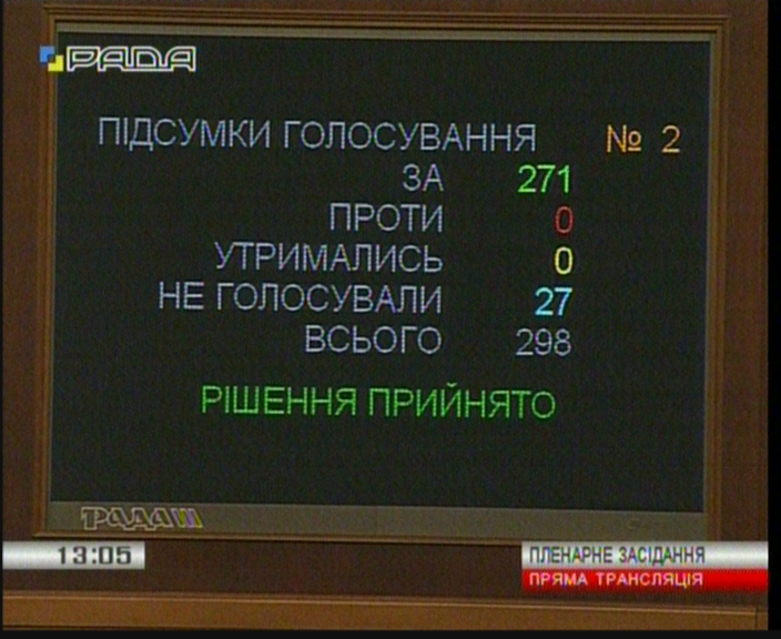 Проект постанови зареєстровано за №1854."За" проголосував 271 народний депутат.