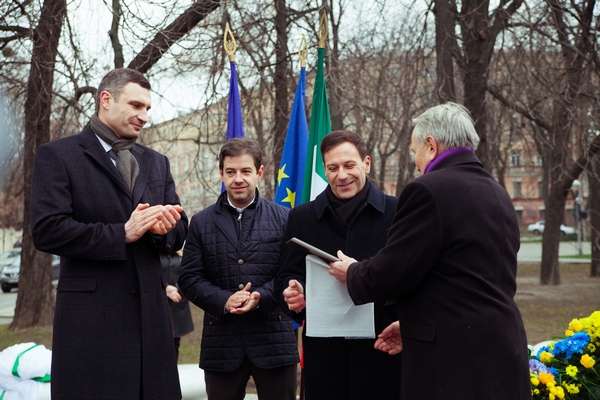 У Києві на Володимирській гірці відбулося офіційне відкриття пам’ятника видатному італійському поету та політику Данте Аліг’єрі. Участь у заході взяли Київський міський голова Віталій Кличко, Надзвичайний та Повноважний Посол Італійської Республіки в Україні Фабріціо Романо та співголова групи дружби Україна-Італія Сергій Алєксєєв.