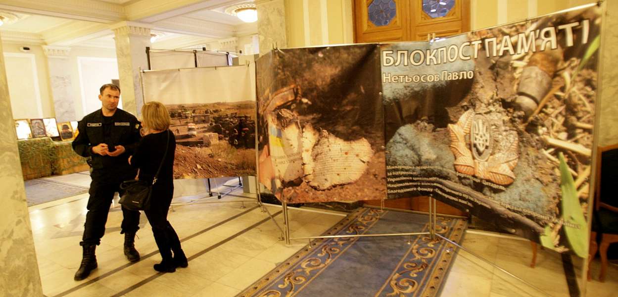 В експозиції представлені матеріали, що розповідають про події на Сході України, про загиблих українських військових та добровольців.