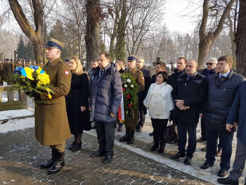 На початку візиту представники Верховної Ради України вшанували пам'ять українців, похованих на православному цвинтарі Варшави. Було урочисто покладено вінки та квіти до могили генерала Марка Безручка, поховань солдатів армії Симона Петлюри, солдатів армії УНР та до пам'ятника жертвам Голодомору.