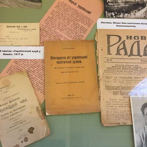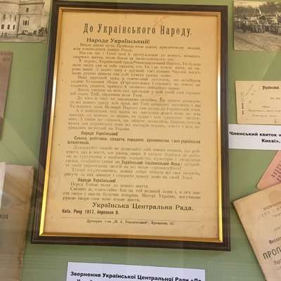 В експозиції представлені унікальні артефакти періоду Української Центральної Ради – першого українського парламенту. Зокрема, усі охочі зможуть побачити перший документ Центральної Ради – відозву «До Українського народу!», датовану 22 березня 1917 року.
