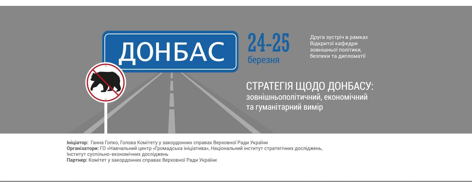 Ініціатором зустрічі виступила голова Комітету Верховної Ради у закордонних справах Ганна Гопко. Організаторами проекту є ГО «Громадська ініціатива», Національний інститут стратегічних досліджень та Інститут суспільно-економічних досліджень (ІСЕД) за підтримки Комітету у закордонних справах. Обговорення розпочалося у форматі «круглого столу». Відкрив захід директор Національного інституту стратегічних досліджень Володимир Горбулін. Він зазначив, що Українська держава і її представники недостатньо чіткі і переконливі в питаннях Донбасу. "У людей є дуже багато питань і стосовно економічної блокади, і стосовно мінського переговорного процесу, і щодо кваліфікації збройного конфлікту, визначення і називання цих сторін, які в цьому конфлікті беруть участь", - сказав Володимир Горбулін. Він наголосив, що відповіді на ці та інші питання повинна дати державна стратегія. "Те, що Крим і Донбас треба повертати Україні - це питання навіть не стояло. Але питання стратегії починається з питання ціни... У найближчій перспективі головним питанням є не те, чи готова Україна повернути собі Донбас. А питання в тому, чи готова Росія піти з Донбасу", - сказав Володимир Горбулін і додав: поки що нічого не вказує на позитивну відповідь на це запитання.