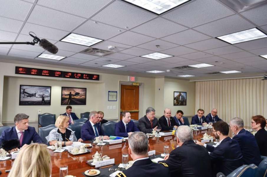 В рамках візиту представники України у складі офіційної делегації на чолі з Президентом України також провели зустріч з Міністром оборони США Джеймсом Меттісом. Сторони обговорили поточну напружену безпекову та гуманітарну ситуацію на Донбасі та відзначили важливість зміцнення трансатлантичної єдності та солідарності.