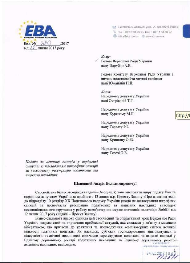 25 липня 2017 року в газеті «Голос України» було опубліковано Закон України «Про внесення змін до підрозділу 10 розділу ХХ «Перехідні положення» Податкового кодексу України щодо незастосування штрафних санкцій за несвоєчасну реєстрацію податкових та акцизних накладних внаслідок несанкціонованого втручання в роботу комп’ютерних мереж платників податків».