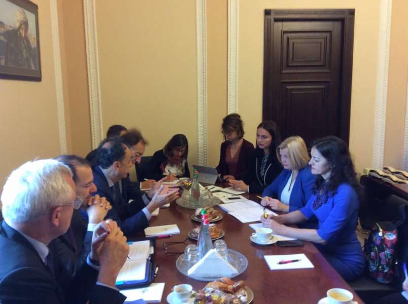Під час зустрічі Першого заступника Голови Верховної Ради України Ірини Геращенко і Голови Комітету Верховної Ради України у закордонних справах Ганни Гопко з представниками ЄС та координаторами гуманітарних проектів ЄС, що реалізуються в Україні, обговорено ряд питань щодо поточної безпекової та гуманітарної ситуації на Донбасі та ситуацію з реалізацією гуманітарних і інфраструктурних проектів на сході України.