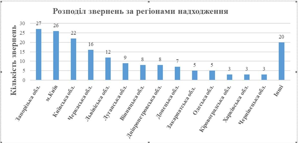 При цьому розподіл звернень за регіонами надходження характеризується такими показниками: