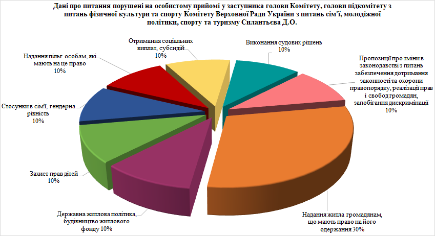 Під час особистого прийому відвідувачі порушували питання сімейної та гендерної політики, захисту прав дітей, забезпечення дотримання законності та охорони правопорядку, реалізації прав і свобод громадян, запобігання дискримінації, житлової та соціальної політики.