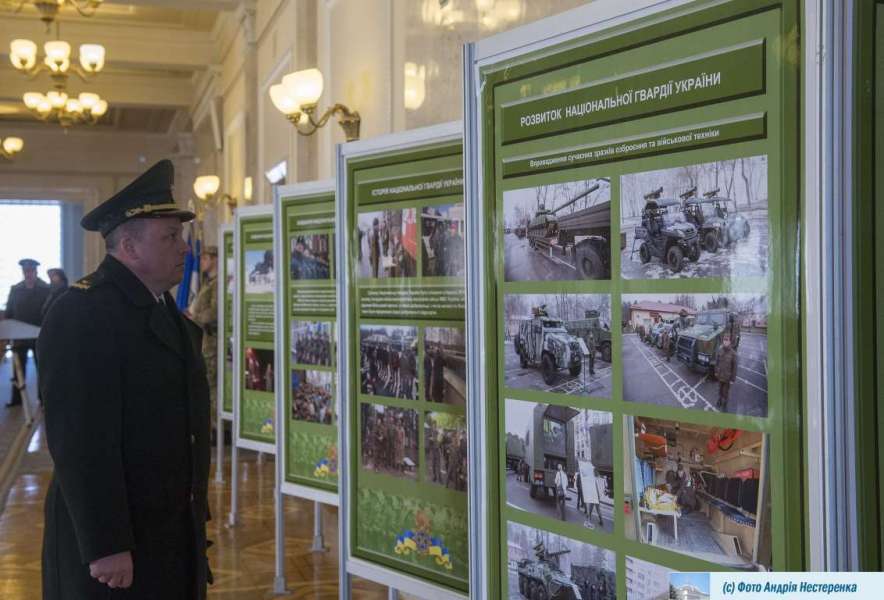 Було презентовану розгорнуту виставку засобів індивідуального захисту, зразків форми одягу, засобів зв’язку, продовольчого та медичного забезпечення Національної гвардії від початку 2014 року до сьогодні, а також тематичну виставку історії та діяльності Національної гвардії України.