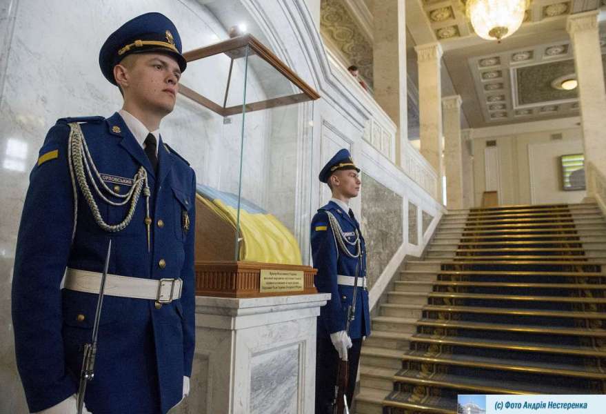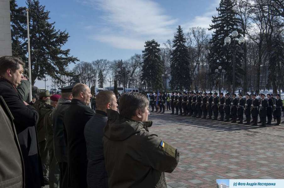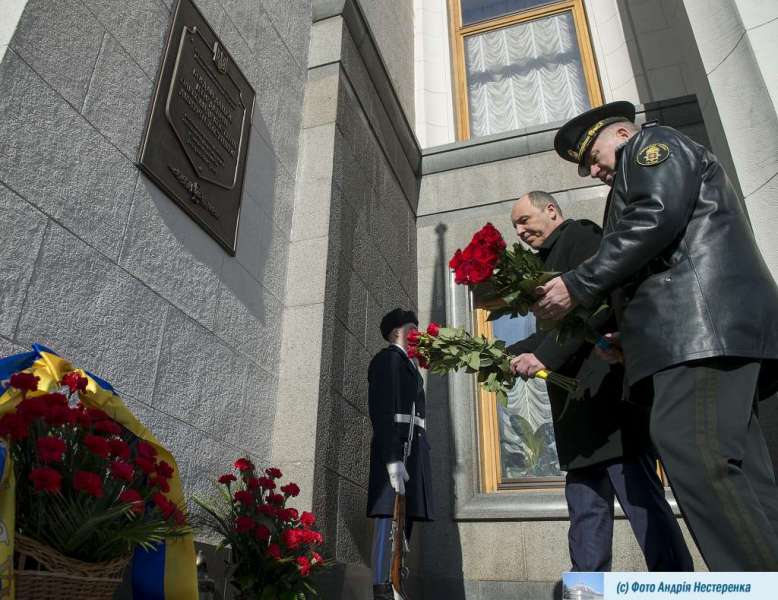 Голова Верховної Ради України Андрій Парубій та командувач Національної гвардії України генерал-полковник Юрій Аллеров, народні депутати України поклали квіти до пам’ятної дошки на честь загиблих під стінами парламенту національних гвардійців та вшанували пам’ять героїв-бійців Нацгвардії хвилиною мовчання.