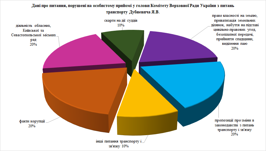 Під час особистого прийому відвідувачі порушували питання транспорту і зв’язку, діяльності органів місцевого самоврядування, аграрної політики і земельних відносин, забезпечення дотримання законності та охорони правопорядку, реалізації прав і свобод громадян.