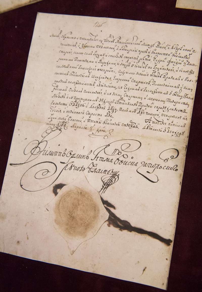 Також в експозиції представлена Конституція Пилипа Орлика - Договір гетьмана Війська Запорізького Пилипа Орлика зі старшиною та козацтвом Війська, який визначав права і обов'язки усіх членів Війська, що передував Конституції УНР. Договір був укладений 5 (16) квітня 1710 року у м. Тягині (нині м. Бендери, Молдова). Від старшини та козацтва документ, написаний староукраїнською мовою, підписав кошовий отаман Кость Гордієнко. Ця пам'ятка української політико-філософської та правової думки складається з преамбули та 16 статей. Сучасна поширена назва «Конституція» походить від дослівного перекладу терміну латинського варіанту документу. За оцінкою істориків, є однією з перших європейських конституцій нового часу.